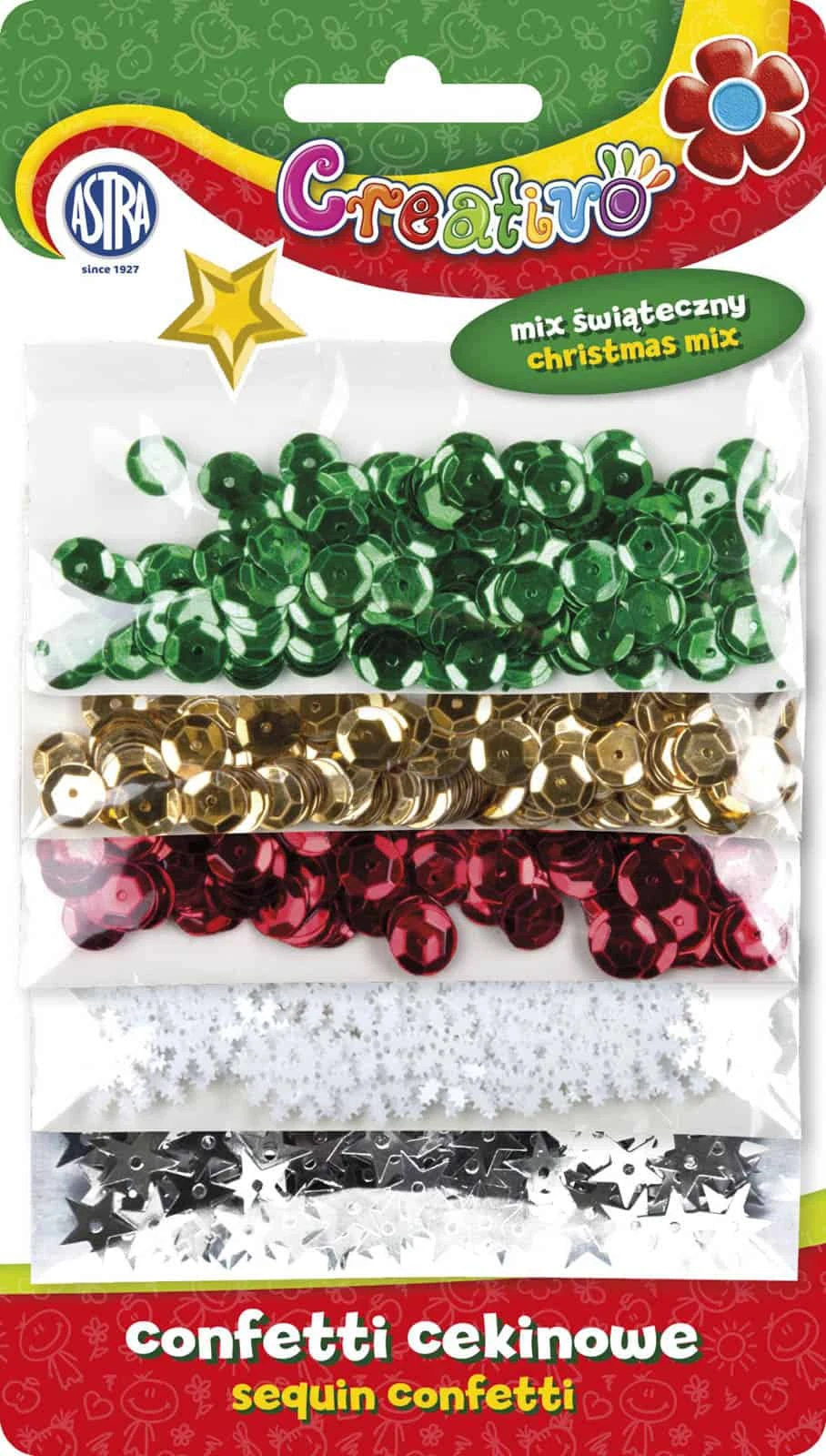 CONFETTI CEKINOWE KÓŁKA NA BLISTRZE ŚWIĄTECZNE 5 WZORÓW 100G