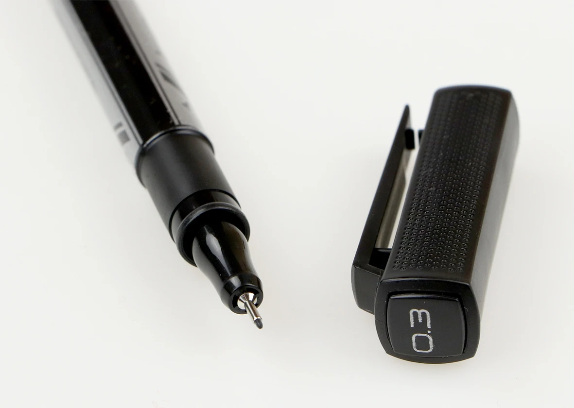 Cienkopis z czarnym tuszem pigmentowym odpornym na wodę oraz blaknięcie.