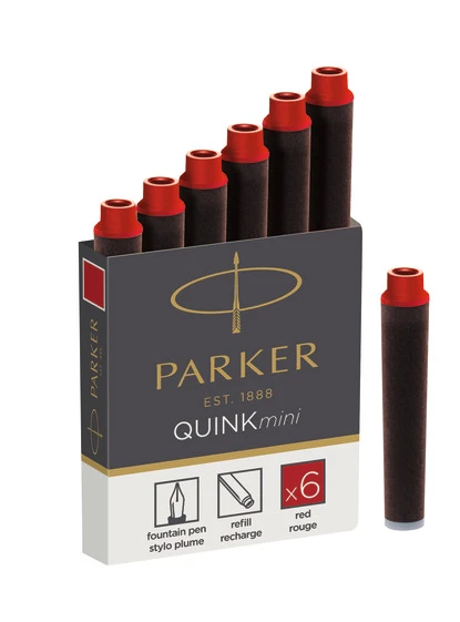 Wypełnione gładkim, bogato pigmentowanym, czerwonym atramentem naboje PARKER QUINK powstały specjalnie dla potrzeb piór wiecznych PARKER.