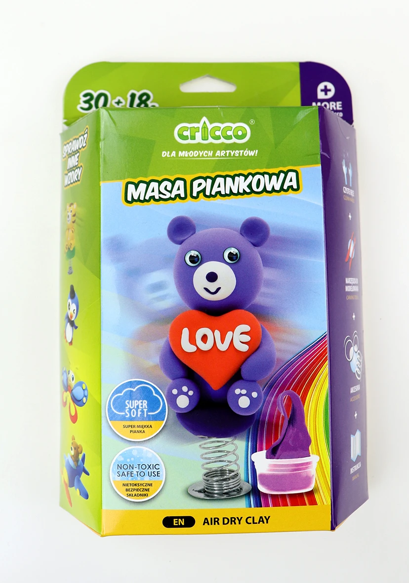 Super lekka masa piankowa - ciastolina w kolorowym pudełku z dołączoną instrukcją tworzenia gotowych wzorów (mix dwóch wzorów w opakowaniu zbiorczym)
