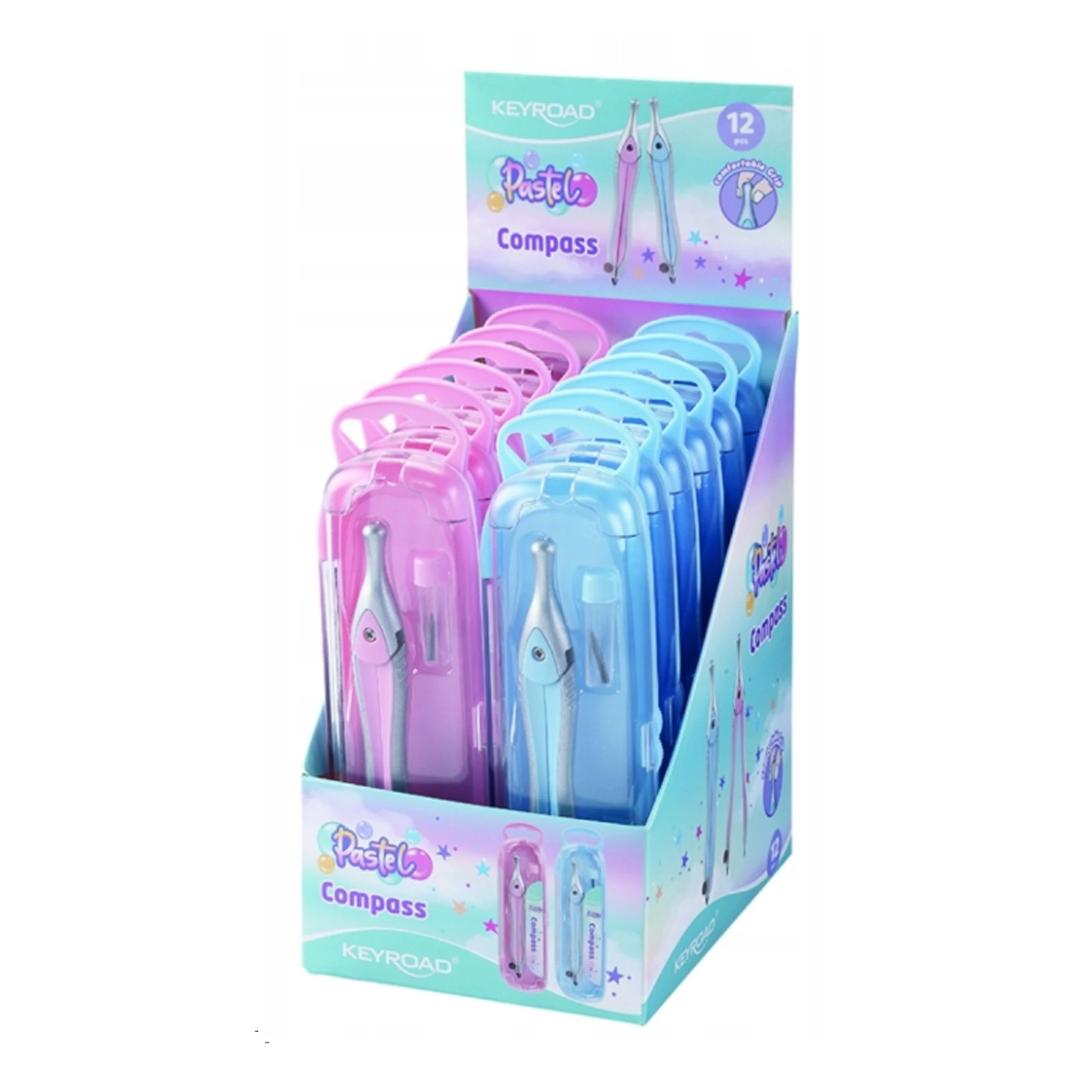 CYRKIEL PLASTIKOWY KEYROAD, PASTEL, Z GRAFITAMI, W ETUI, DISPLAY, MIX KOLORÓW