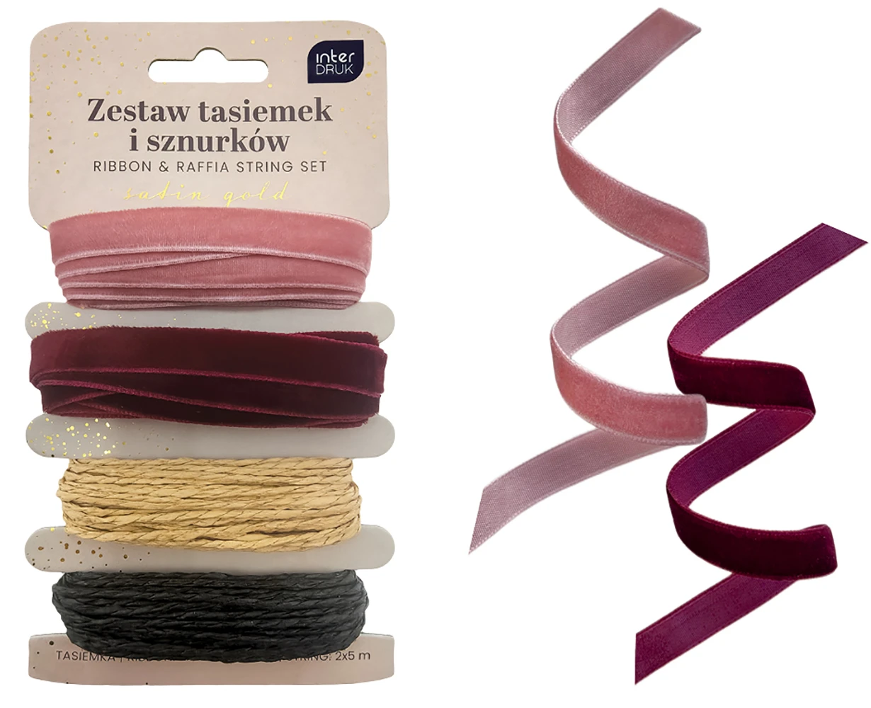 W zestawie: tasiemka 2x2 m, sznurek: 2x5 m.