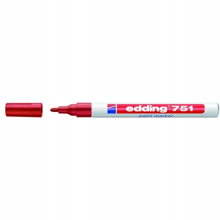 Marker olejowy EDDING 751 w kolorze czerwonym to wysokiej jakości marker lakierowy, przeznaczony do trwałego znakowania różnych powierzchni, takich jak metal, szkło, plastik czy kamień.