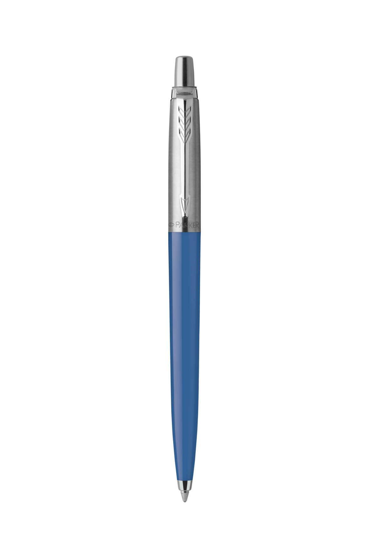 Korpus w kolorze niebieskiego dżinsu dopełniają kultowe wzornictwo linii Jotter, charakterystyczne kliknięcie oraz klips w kształcie strzały .