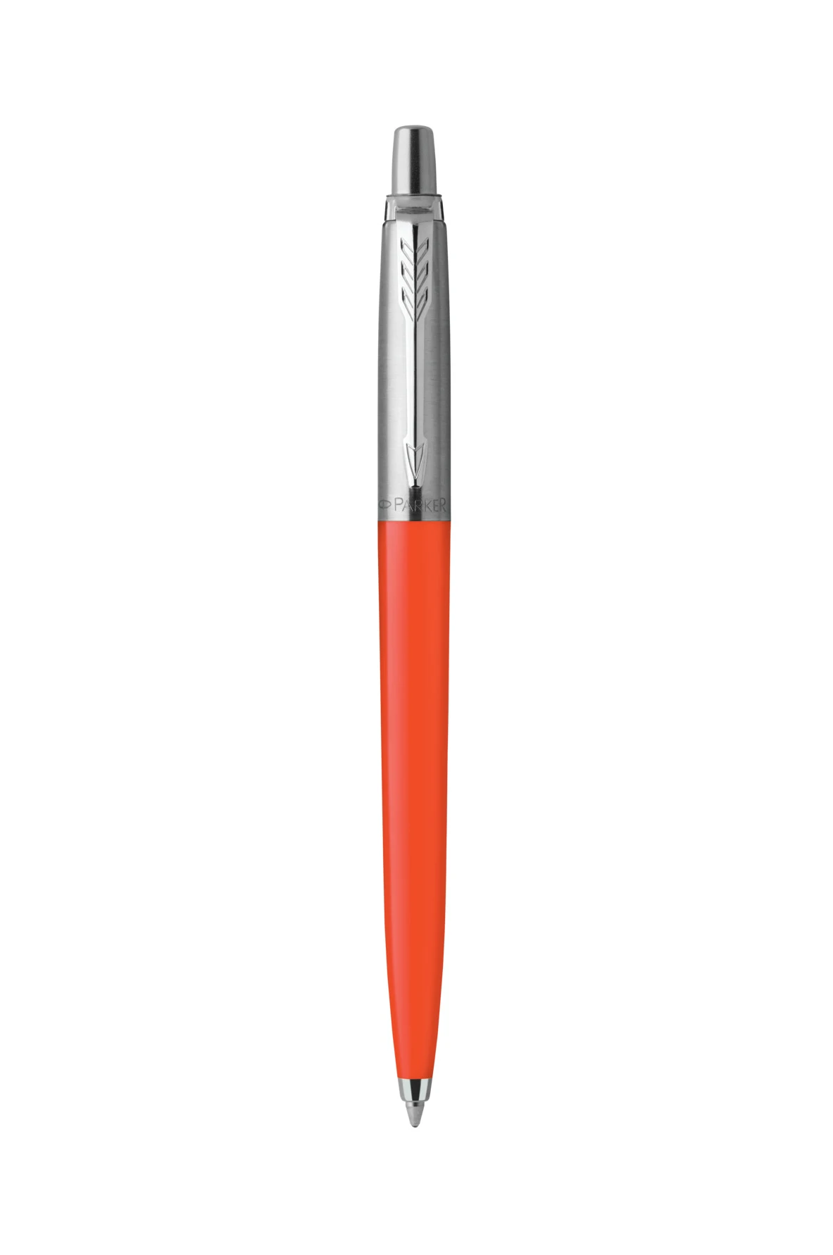 Korpus tego kunsztownie wykonanego we Francji długopisu w kolorze ciemnopomarańczowym dopełniają kultowe wzornictwo linii Jotter, nasadka ze stali szlachetnej, charakterystyczne kliknięcie oraz klips w kształcie strzały.